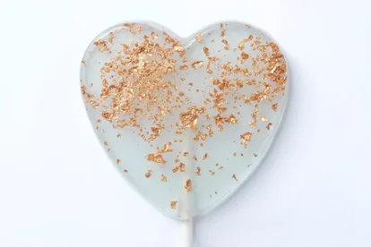Deze ambachtelijke lolly met gouden flakes of koper flakes is wel een hele originele geboorte traktatie! Personaliseer met een leuk label of uitgesneden naamsticker!