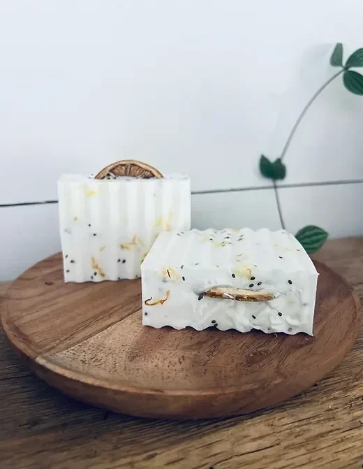 Zeepbar handgesneden ribbel met sinasappel